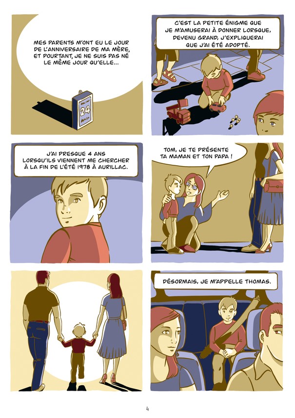 Anthony Bertrand évoque dans cette BD témoignage son parcours et ses questionnements liés à son adoption et son statut d’homosexuel désireux d’être père. Né dans un monde où il n’était pas sûr d’être à sa place, malgré l’amour que lui prodiguèrent ses parents adoptifs, il raconte sa quête des racines et son cheminement visant à concrétiser son rêve de paternité.