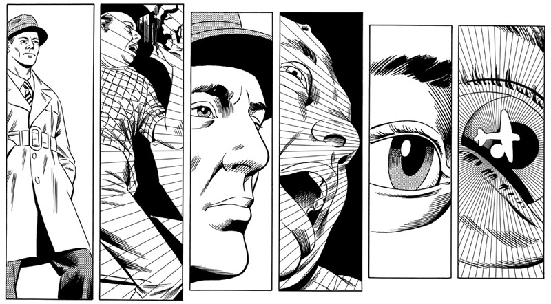 La couverture de Meurtre télécommandé résume parfaitement la teneur de cet album, qui montre un flic, borsalino vissé sur la tête et revolver à la main, doté d’un intrigant troisième œil sur le front. Car si l’ouvrage a toutes les apparences d’un polar classique dans sa forme, la narration va dévier vers une sorte d’univers parallèle.