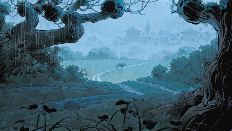 Comme pour tenter de comprendre ce qui produit les tyrans, ce troisième tome s’ouvre sur un flashback spectaculaire montrant un Silvio jeune, harassé par le poids de la charrette qu’il doit tirer sous les ordres d’un chien sans pitié, des années avant qu’il ne fasse son putsch pour commander la ferme. Le syndrome de la victime devenue bourreau à son tour…