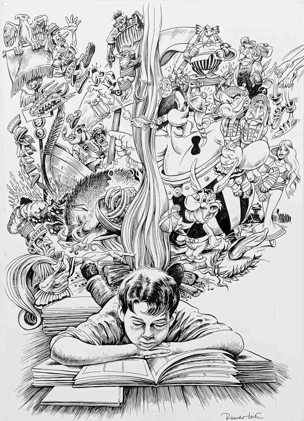 Mais c’était sans compter sur le démon de la BD qui revint lui chatouiller le pinceau au détour des années 2010. Le déclic se produit lors d’un séjour à Bruxelles où il put visiter le musée consacré à son maître. « Par-delà le temps et l’espace », Hergé lui demande de raconter son histoire. Il n’en fallut pas plus pour motiver Ricardo, mais le projet dura dix ans, soit beaucoup plus que ce qu’il avait prévu. Et quand on voit l’ampleur de l’ouvrage, on comprend qu’il n’aurait pu se faire en un jour…