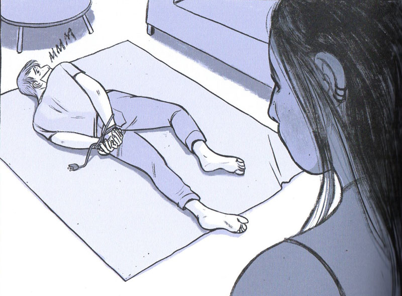Difficile de parler de cet ouvrage sans en révéler l’intrigue… car c’est au fil des pages, à coup de flashbacks et de sous-entendus, que le lecteur va découvrir peu à peu ce qui se cache derrière un lourd secret qui unit la protagoniste principale, Hélène, à ses copines de lycée, et sans que l’on puisse dire pourquoi, à son père, qui semble dissimuler des douleurs intimes derrière ses pertes de mémoire. Mais le sujet central, qui s’impose très vite à travers le personnage badass de Katia, jeune femme au caractère bien trempé, qui n’hésite pas à donner de la batte de base-ball envers les hommes qu’elle considère comme des violeurs potentiels. C’est d’ailleurs après s’en être pris à un groupe de suprématistes blancs qu’elle s’est retrouvée à purger une peine de prison.