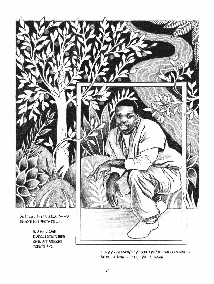 Très remarqué à sa sortie l’an dernier, ce livre extrêmement personnel d’une nouvelle venue dans la bande dessinée a déjà été, de manière fort légitime, récompensé du prix Fnac-France Inter. Valentine Cuny-Le Callet nous livre ici une œuvre dense et hybride, où elle évoque sa correspondance avec Renaldo McGirth, jeune prisonnier afro-américain détenu dans le couloir de la mort. Plus qu’une simple dessinatrice, celle-ci pratique également la gravure, et par un seul feuilletage du livre, on ne peut être qu’impressionné par le talent de cette artiste qui jaillit littéralement de ces pages.