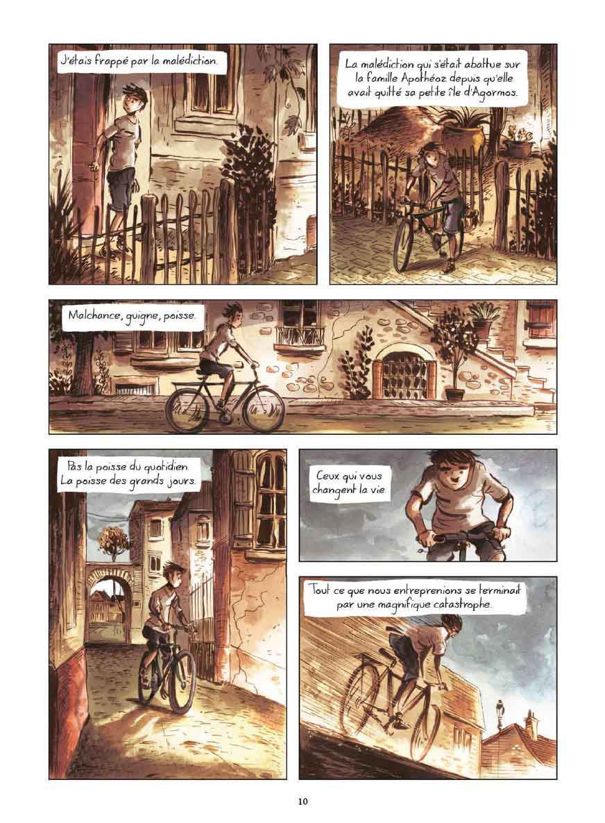 Théo Apothéoz, comme son père et son grand-père avant lui, attire la poisse autour de lui. Quand un Apothéoz est dans les parages, la faucheuse n’est jamais loin… Théo, paralysé par cette malédiction familiale, a choisi de ne rien entreprendre, y compris dans des relations amoureuses. Il paraîtrait que cette poisse, elle a commencé le jour où Grand-papa a quitté son île pour venir travailler sur le continent. La solution au problème se trouverait-elle là-bas ?