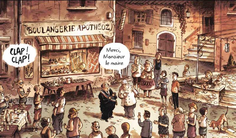 Ce qui saute tout de suite aux yeux dans cet album, c’est indubitablement le graphisme, qui réunit tout ce que j’aime. Un trait semi-réaliste faussement imparfait, tout en ondulations et pourtant très maîtrisé, assorti d’une mise en couleurs aquarellée sublime, centrée autour d’une tonalité marron-orange avec quelques sections entre bleu gris et bleu de minuit (normal, il y a pas mal de scènes nocturnes). Dawid réussit à créer des ambiances vraiment splendides (notamment pour les paysages et les décors villageois ou urbains du livre) qu’on se surprend à mater pendant de longs instants. Cela n’est pas si étonnant car cet artiste, qui semble avoir gardé toute son âme d’enfant, a été le coloriste de plusieurs albums jeunesse, celui-ci étant son premier roman graphique.