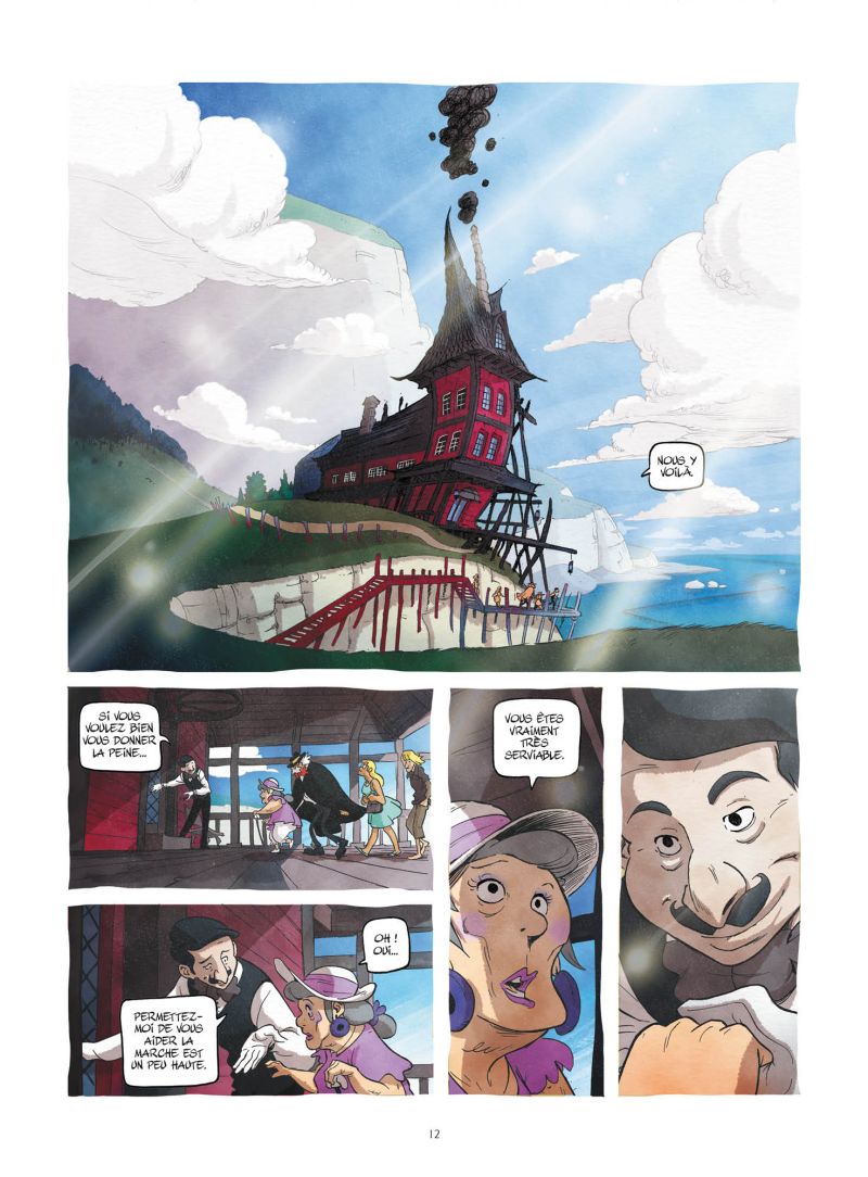 Il n’empêche que l’histoire est porteuse de malaise. L’hôtel en question n’est rien de moins qu’une parabole du purgatoire, où les résidents viennent séjourner pour le salut de leur âme, juste avant l’ « ultime voyage ». Dans cette quête irréelle, c’est Émile le gérant de l’hôtel, sorte de majordome prévenant à l’extrême, qui va les guider pour les aider à affronter leurs regrets, faute de quoi ils risqueraient de passer l’éternité dans les limbes, symbolisées par la sombre forêt avoisinante peuplée de fantômes en souffrance. Pour donner vie à cet univers insolite, Nicolas Delestret confrontera Émile avec trois hôtes bien campés qui lui donneront pas mal de fil à retordre…
