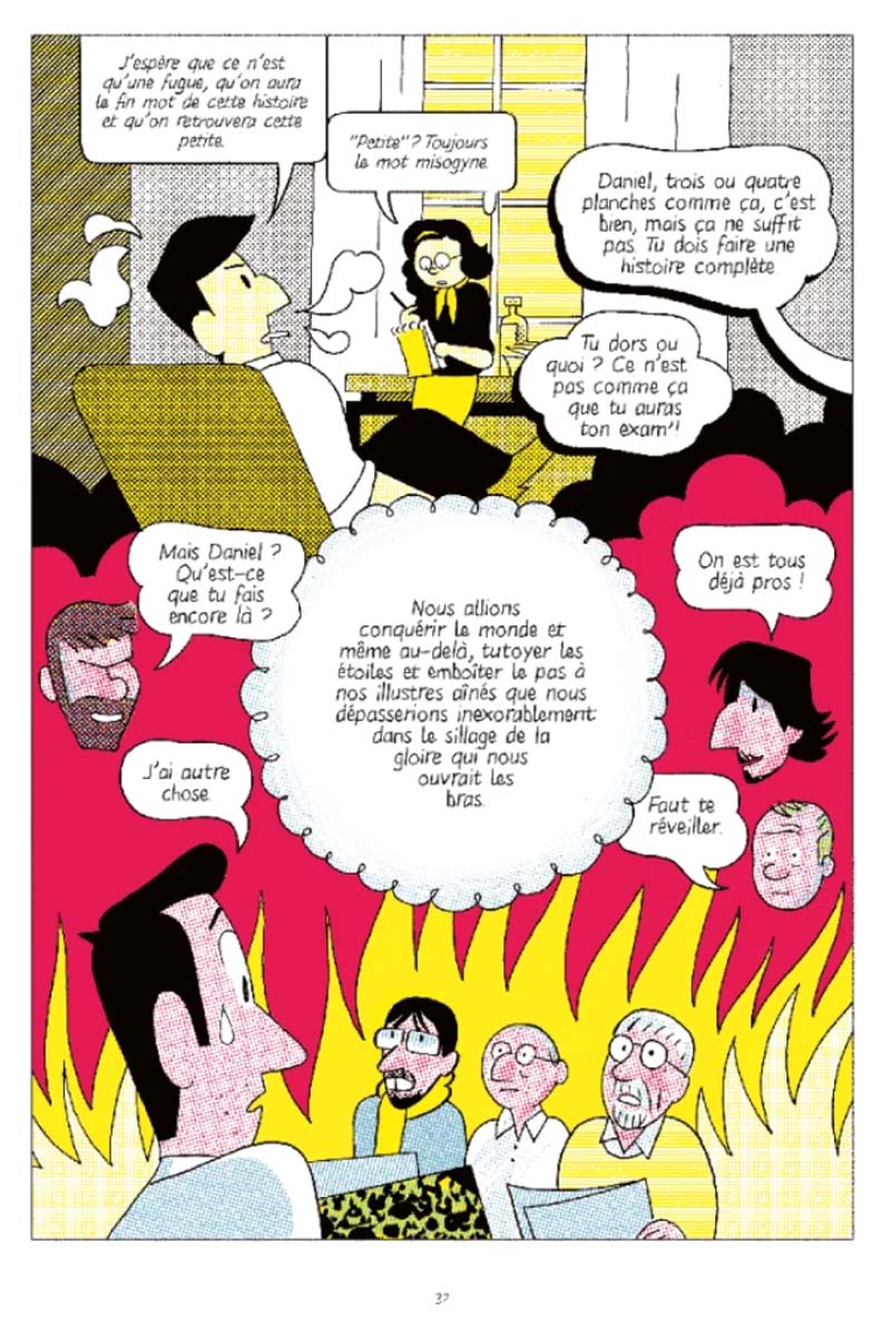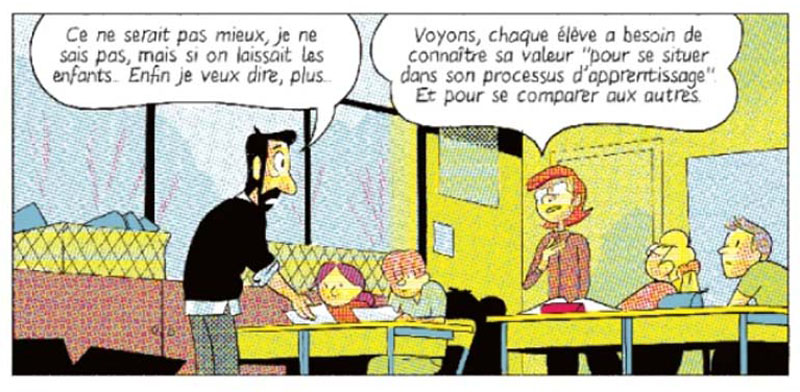 On peut dire que c’est souvent drôle, encore faut-il être réceptif à ce type d’humour à la fois cérébral et plutôt subtil (on sourit plus qu’on ne rit), que ne facilitera peut-être pas la forme narrative un rien foutraque, intégrant nombre de récits dans le récit. Outre ses anciennes planches, dont un polar foireux, des illustrations de documentaires ou des strips, on y trouve les dessins d’une dizaine de confrères qui ont participé au projet, rebaptisés pour l’occasion par des « pseudos d’acteurs ». Ainsi, Mathieu Sapin devient « Mathieu Malin », Lisa Mandel est « Lisa Modèle » ou encore Blutch qui ici se fait appeler « Crush ».