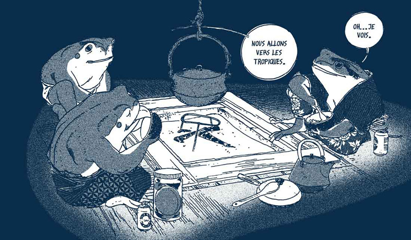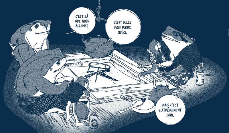 Quand la bande dessinée rejoint le livre d’art… Mis en valeur par les Éditions de la Cerise, qui ont la passion du papier chevillé au corps, ce petit ouvrage bénéficie d’un écrin délicat (format à l’italienne et dos toilé) pour un récit qui ne l’est pas moins. Linnea Sterte nous propose une fugue pleine de poésie, telle une invitation à abandonner tout nos repères en se mettant dans la peau d’une grenouille qui a décidé de tailler la route.