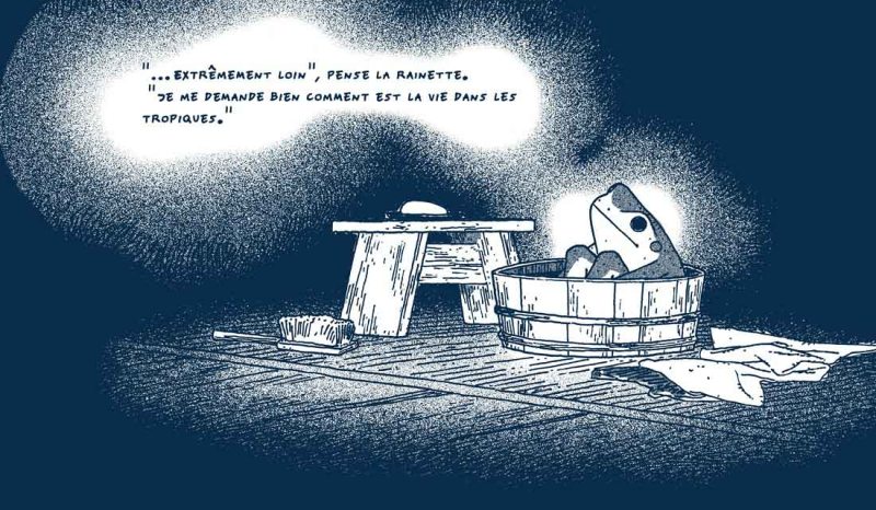 Récemment récompensée par le prix Révélation à Angoulême, Linnea Sterte, sincèrement émue, avait du mal à réaliser ce qui lui arrivait. Peut-être parce que comme sa rainette, elle a suivi son chemin uniquement pour la beauté et l’amour de l’instant présent, englobant son art, ce qui lui a permis de créer ce conte modeste et intemporel ayant séduit de manière fort compréhensible le jury angoumois.