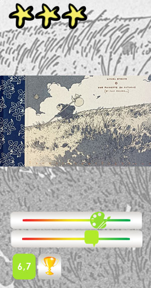 Comme une écriture, son dessin très sobre ne manque pas de charme, évoquant les estampes asiatiques. Tiges, feuilles et branches des végétaux s’enroulent et se déroulent en pleine page, formant des motifs ou des frises, au même titre que les paysages élargis par l’horizontalité du format à l’italienne. Aucun lieu précis n’est évoqué, mais certains éléments laissent à penser que l’histoire à pour cadre le Japon, ne serait-ce que par cette très belle représentation d’un volcan qui pourrait être le Fuji Yama, ou par l’apparition de cette fillette en kimono juchée sur un arbre.