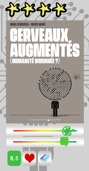 A défaut d’augmenter votre cerveau par des artifices en forme de miroirs aux alouettes, cet ouvrage fera sans doute carburer vos neurones, à un moment où ceux-ci sont de moins en moins sollicités par les promesses des « prothèses numériques » (Google ne nous sert-il pas déjà à pallier nos trous de mémoires ?). Si certains termes du livre peuvent paraître compliqués, il ne faudra pas s’arrêter à cela et déployer ses « capteurs sensoriels » pour en tirer la substantifique moelle qui permettra (ou pas) de « réinitialiser son propre logiciel interne » et revenir vers ce qui fait de nous des humains.
