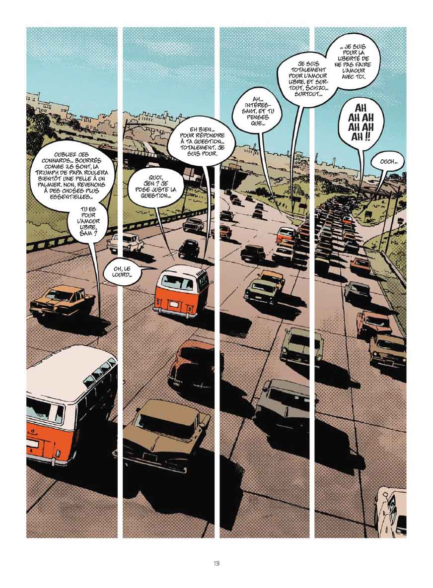 Le festival d’Altamont fut miné par une violence que le « pouvoir des fleurs » n’aura pas réussi à égayer. Tout en reconstituant le déroulé des faits, ce one-shot s’avère aussi une plaisante immersion dans la Californie de la fin des Sixties, quand la jeunesse croyait encore en un monde de paix et d’amour (on ne rit pas).