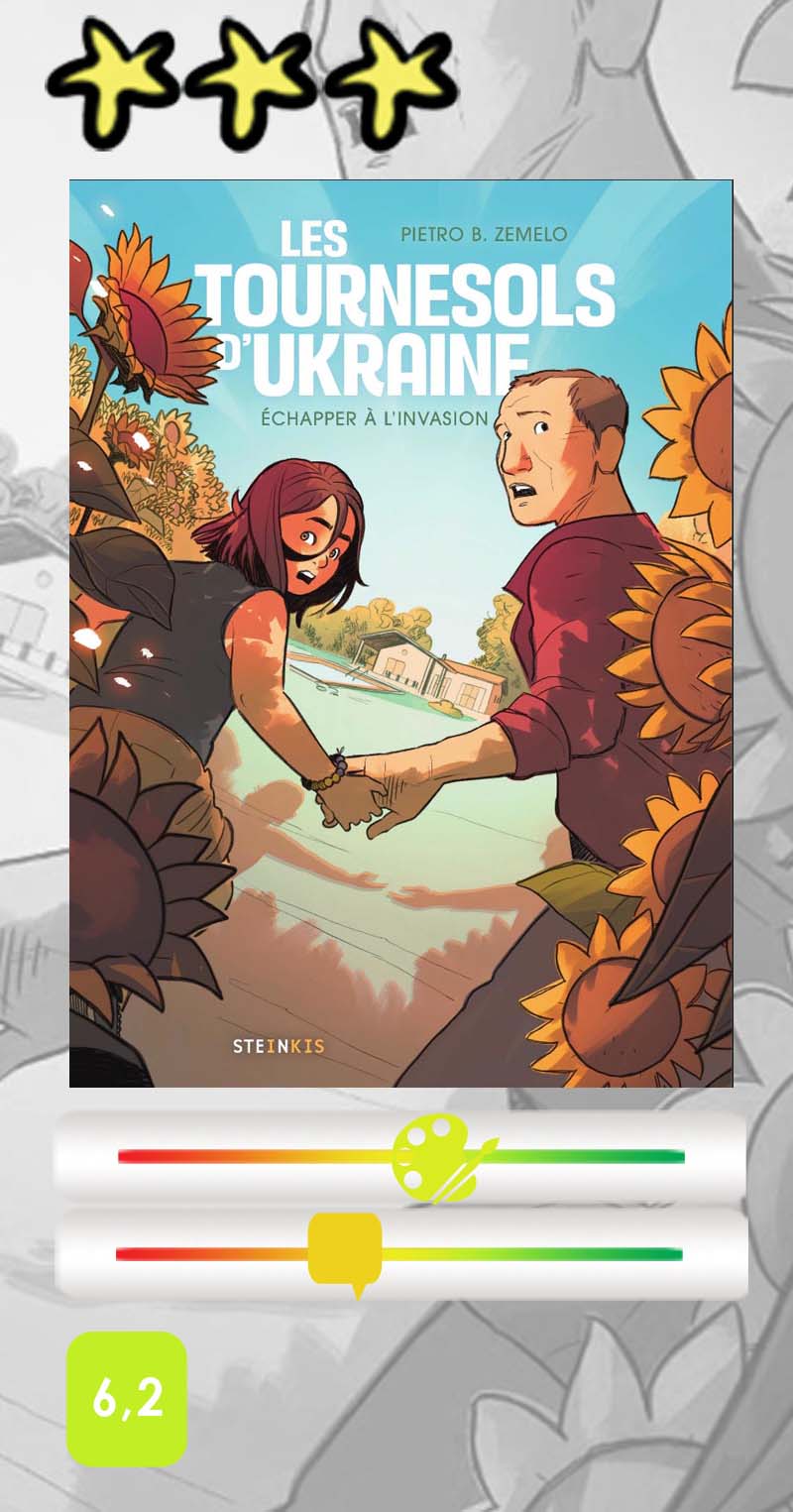 Difficile également de dire si le graphisme très lisse est des plus adaptés à ce type de contexte. De même, les personnages apparaissent assez peu expressifs, si bien que l’on peut avoir parfois du mal à les différencier. Le but était-il d’adoucir le cauchemar vécu par les protagonistes en produisant un dessin rond et inoffensif, si l’on excepte la page 149 qui représente, via un trait épais et irrégulier, des soudards russes ayant investi une demeure ukrainienne ? Un tel parti pris semble faire de l’objet un ouvrage destiné au jeune public, ce qui en soi n’est pas péjoratif (les enfants savent aussi ce qui est bien !), mais restera de l’ordre de l’anecdotique pour un lecteur plus adulte.