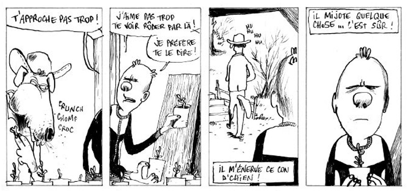 Vingt ans après, l’humour est resté intact, indifférent à l’usure des ans et au wokisme en vogue. Humilié par sa compagne dès qu’il se risque à fanfaronner, Bouzard, allergique aux tâches ménagères, ne subira jamais les scuds de #metoo. Quand bien même il cherche à faire faire la peau de son « chien stupide », qui prend un malin plaisir à le ridiculiser, les associations de défense des animaux ne pourront rien contre lui. Ni la ligue contre l’alcoolisme, malgré sa consommation de pinard bien au-delà du raisonnable, ni les ligues catholiques à la vue de son chibre raide (quoique modeste). Bref, le ton va si loin dans l’absurde et l’autodérision qu’il rend inattaquable son auteur… et ne ferait que ridiculiser l’attaquant…