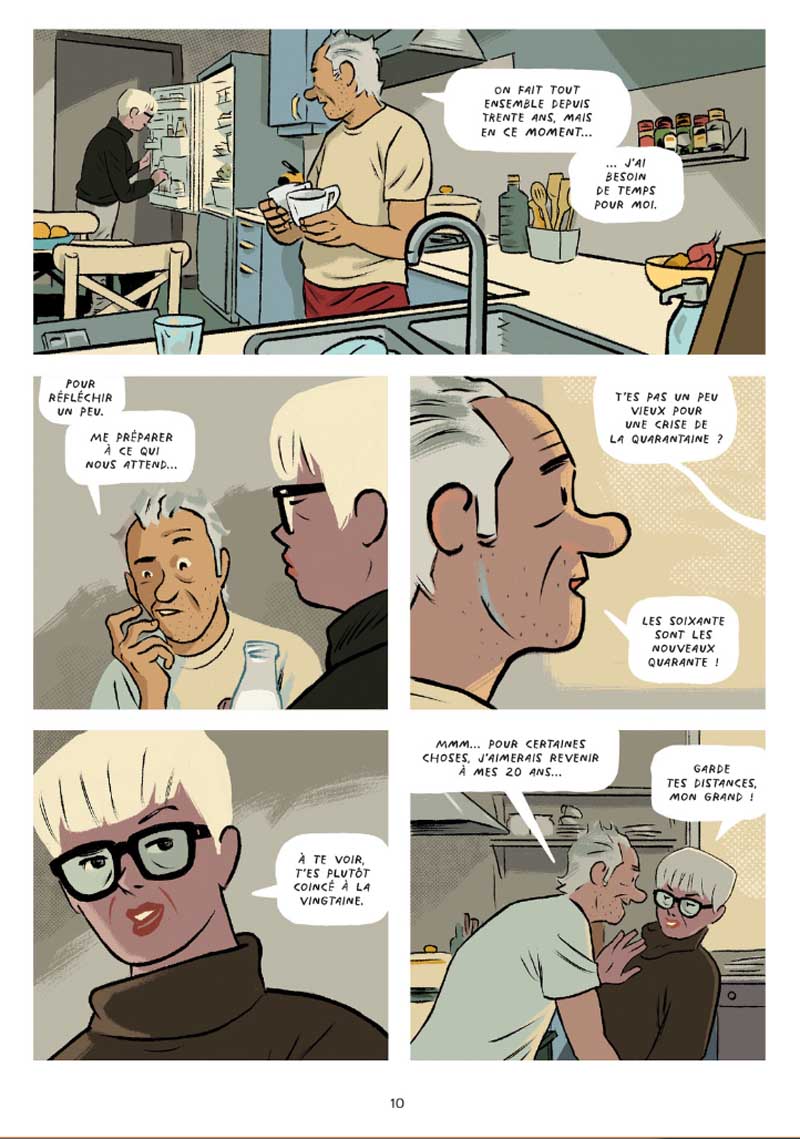 Dans Boomers, rien de tous ces clichés. Ernesto, son épouse Lola et ses amis sont plutôt lucides quant à leur statut dans le monde d’aujourd’hui, et ils ont conservé la conscience politique (forcément de gauche, hein ?) de leurs jeunes années. Tout en tentant de prendre de la distance, car ces seniors vivent avec leur temps (ils sont « connectés » et familiarisés avec les smartphones et Netflix), ils se désolent des effets néfastes des réseaux sociaux sur la qualité de l’information et de l’impact des fake news. Si le récit se déroule en Espagne, pays d’origine de l’auteur, on peut constater que la tendance s’est internationalisée et n’est pas propre à ce pays.