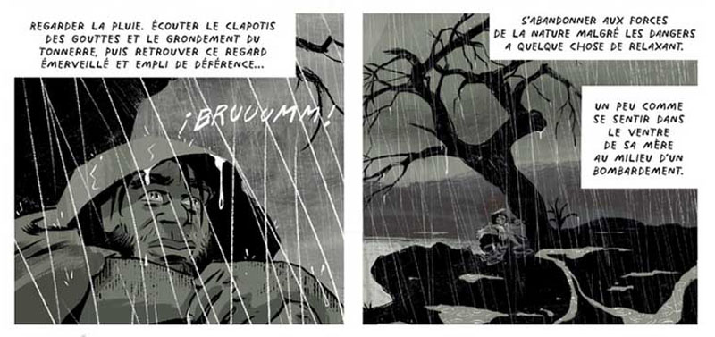 Extrait p.14 – Ernesto, seul au volant, broie du noir sous une pluie battante :