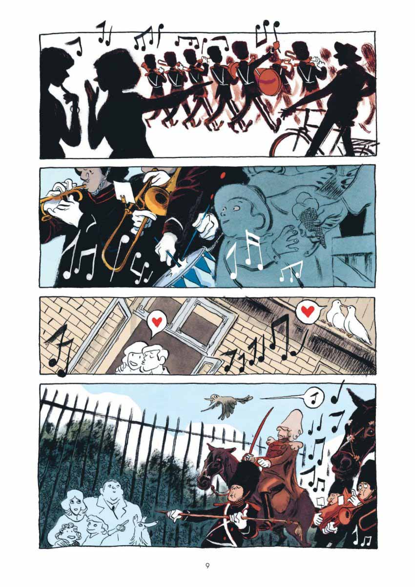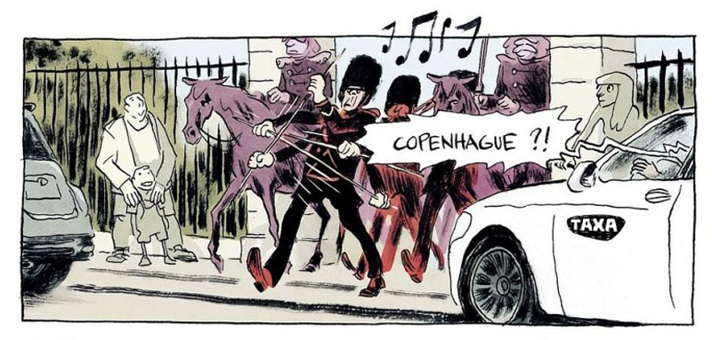Et pour ce qui est de la déjante, le moins qu’on puisse dire, c’est que les auteurs n’ont pas fait dans la demi-mesure ! L’histoire commence en fanfare, au propre comme au figuré. Dès son arrivée dans la cité scandinave, Nana Miller, parigote un peu olé-olé (qui a décidé de partir une semaine à Copenhague en oubliant de prévenir sa fille, restée seule à la maison !), va se retrouver entrainée dans un tourbillon sonore au rythme des tambours et des trompettes lors d’une parade de soldats royaux, un événement qui va donner le la de l’histoire…