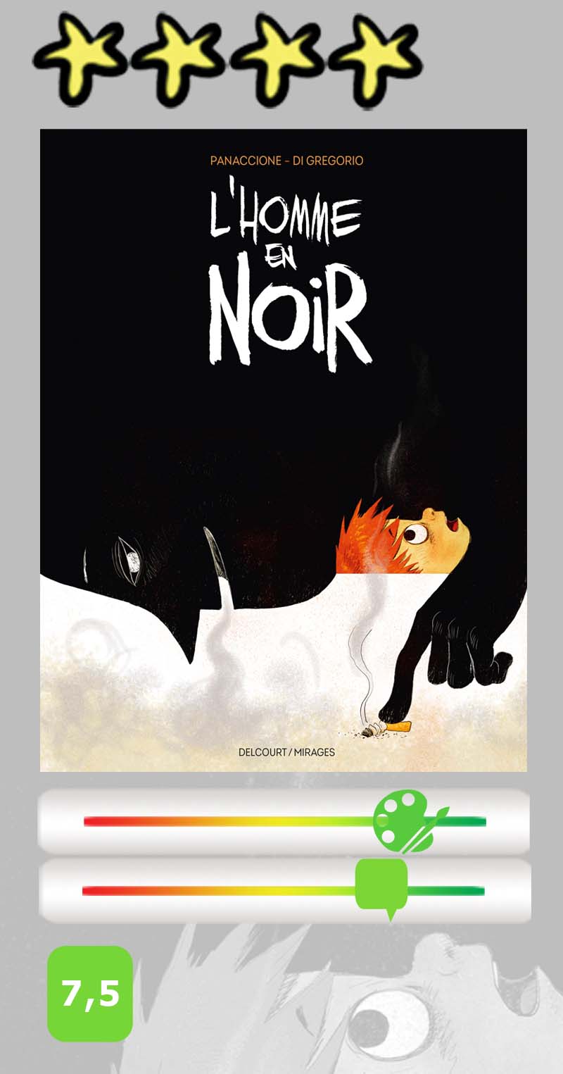 Auteur prolifique, Gregory Panaccione n’a conservé que sa casquette de dessinateur pour revenir avec un récit scénarisé par Giovanni di Gregorio. Si L’Homme en noir a trait au monde de l’enfance, il aborde un thème grave, celui de la pédophilie. La narration efficace, tout en subtilité et en évitant l’écueil du voyeurisme, va permettre à Panaccione d’y déployer toute sa créativité, le dessin contenant ici une réelle valeur ajoutée.