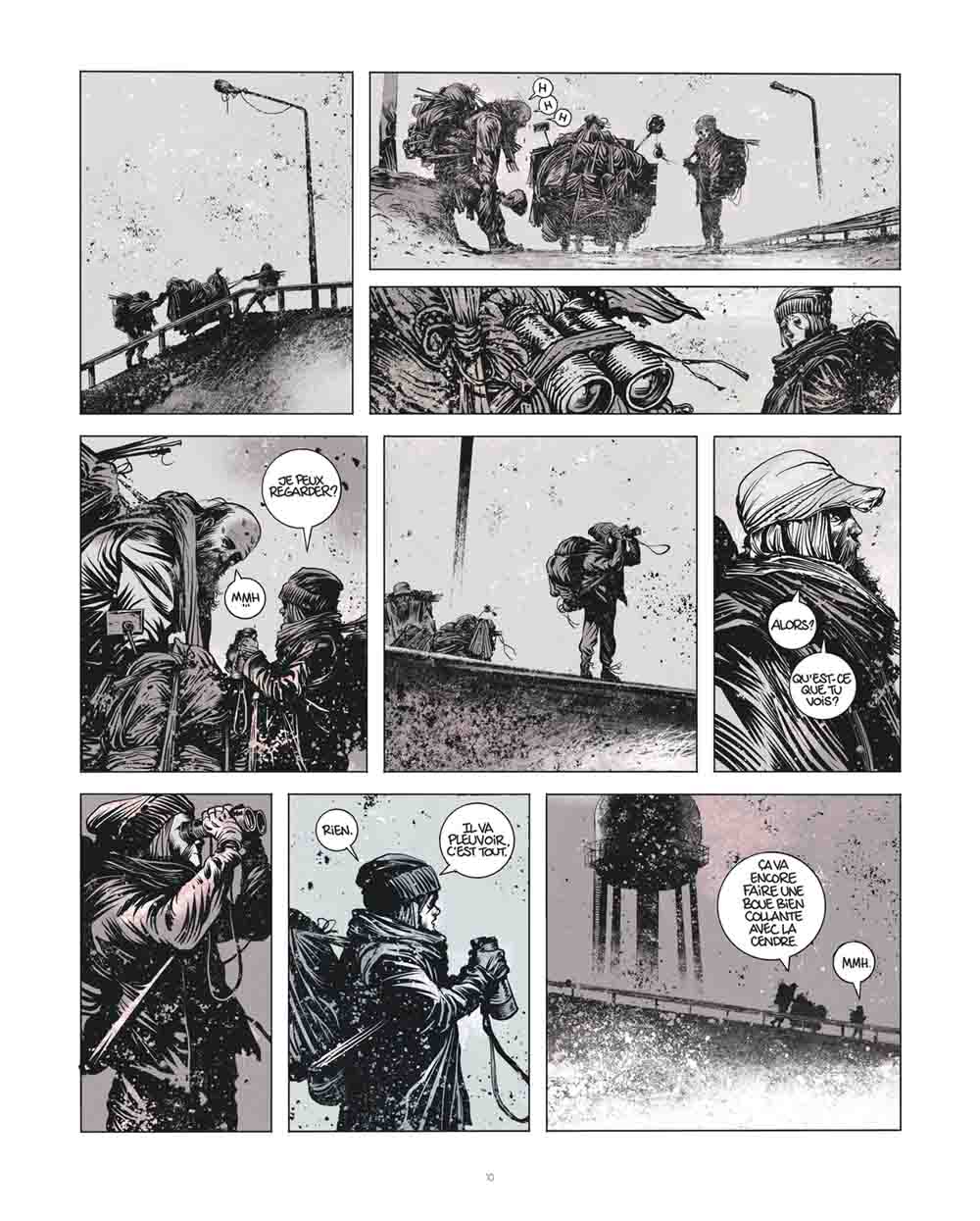 L’apocalypse a bien eu lieu. Dans un monde recouvert de cendres, où la vie est quasiment absente, deux silhouettes errent dans une solitude lugubre, la peur au ventre. Pour fuir le froid glacial, un homme et son fils tentent de gagner le Sud. La menace est partout, car dans cette course à la survie, chacun défend sa peau. Plus que jamais, l’Homme, devenu anthropophage, est resté un loup pour l’Homme. Une adaptation en BD par Manu Larcenet du roman de Cormac McCarthy.