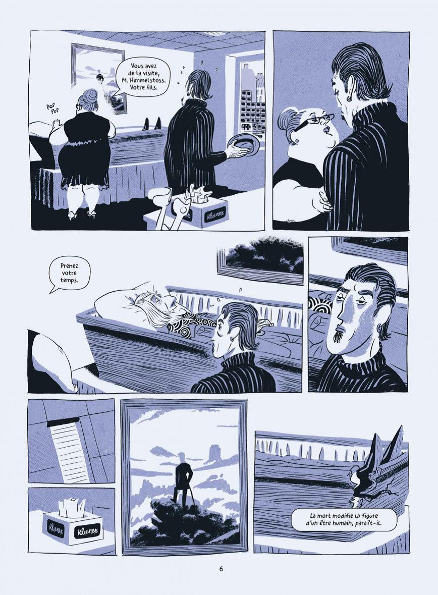 En parallèle de ce récit, on retrouve Victor qui, après avoir revu son père à l’hôpital juste avant qu’il ne décède, s’est lancé dans une randonnée alpine avec sa femme et son fils. Son objectif : disperser les cendres du paternel. Victor, qui tente difficilement de se mettre à l’eau comme Rufus trente ans avant lui, compte sur cette expérience vers les hauteurs pour terrasser ses propres démons. On relèvera l’utilisation astucieuse d’Uli Oesterle d’un procédé de synchronicité narrative, de la page 112 à 121 : dans un musée de Munich, Rufus est assis en face (totalement par hasard, car il n’aime pas la peinture) du Voyageur contemplant une mer de nuages, célèbre tableau de Caspar David Friedrich ; la séquence suivante montre Victor en train de vider le contenu de l’urne funéraire au sommet d’une montagne. Sans doute le plus beau passage et le plus chargé de sens de ce deuxième volet.