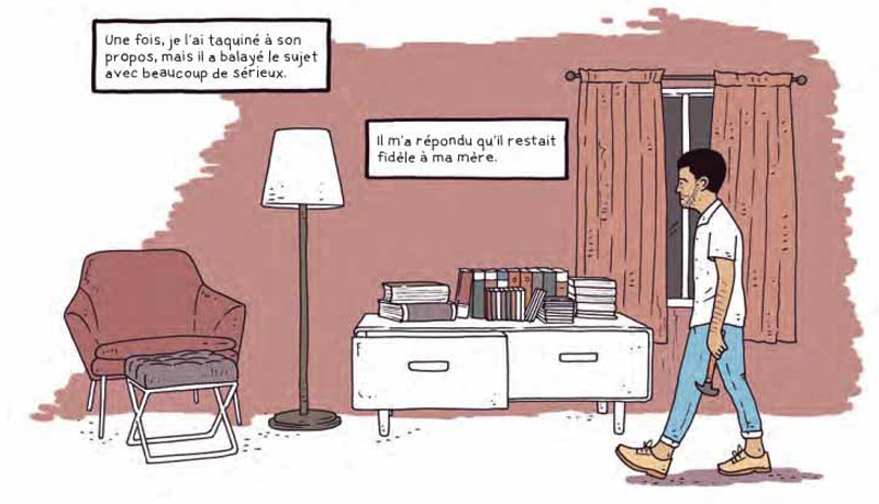 A travers les discussions ou états d’âme de ces personnages, Edo Brenes nous fait pénétrer leur intimité. C’est bien sûr d’abord du deuil dont il est question avec ce fils tout juste orphelin qui inaugure le récit. Celui-ci est en proie à mille questionnements, perdu dans les souvenirs incarnés par divers objets probablement voués à disparaître dans les cartons. Mais d’autres thèmes sont développés, et ceux-ci sont en corrélation avec un monde qui change, hésitant entre l’archaïsme et la modernité, notamment celui de l’orientation sexuelle. C’est par le biais du personnage de Garçon, un homme qui aime porter des vêtements féminins, que cette question de l’acceptation de l’autre dans ses différences qui va se poser au lecteur. Et ici, on est bien au-delà des clichés. Certes, s’il songe à se faire poser des implants mammaires, il tient à conserver son pénis. Et qui plus est, il est profondément croyant. Un passage qui déroutera sans doute les esprits les plus réactionnaires, ceux qui, pour reprendre une citation de Garçon, « n’arrivent pas à comprendre que l’essence de la moralité réside dans l’absence de jugement ». Plus globalement, c’est le poids des valeurs catholiques sur la société qui apparaît en filigrane — même si le Costa Rica compte un nombre de pratiquants similaire à celui des pays « développés » — mais comme en France ou ailleurs, on ne se débarrasse pas aussi facilement de mœurs imposées par deux mille ans de christianisme.
