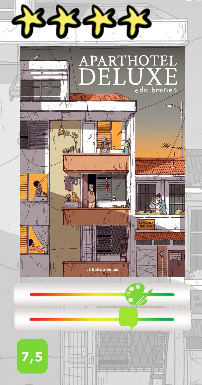Œuvre sensible invitant à la réflexion, Aparthotel Deluxe est la quatrième bande dessinée d’Edo Brenes dont on a pu découvrir récemment Touristes à la Havane, et, nous prévient l’éditeur, le premier roman graphique créé directement pour lui. Ainsi, on ne sera guère surpris de voir cet auteur, déjà récompensé par divers prix à l’étranger, émerger doucement mais sûrement dans le petit monde du neuvième art. Et on est d’autant plus ravi quand celui-ci vient d’un pays qui n’’est pas forcément connu pour sa production en la matière.
