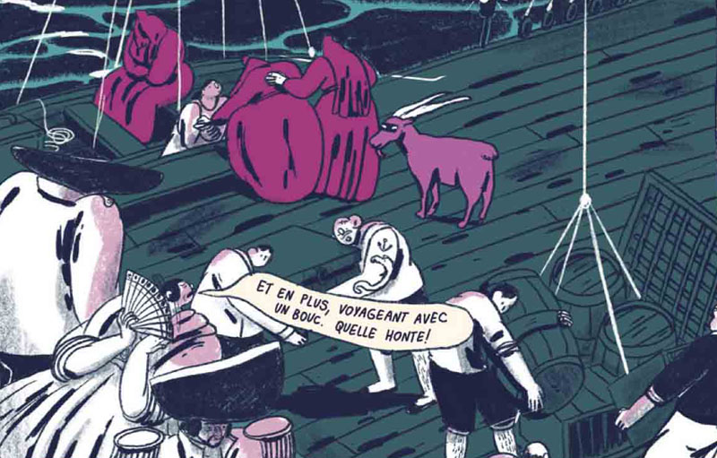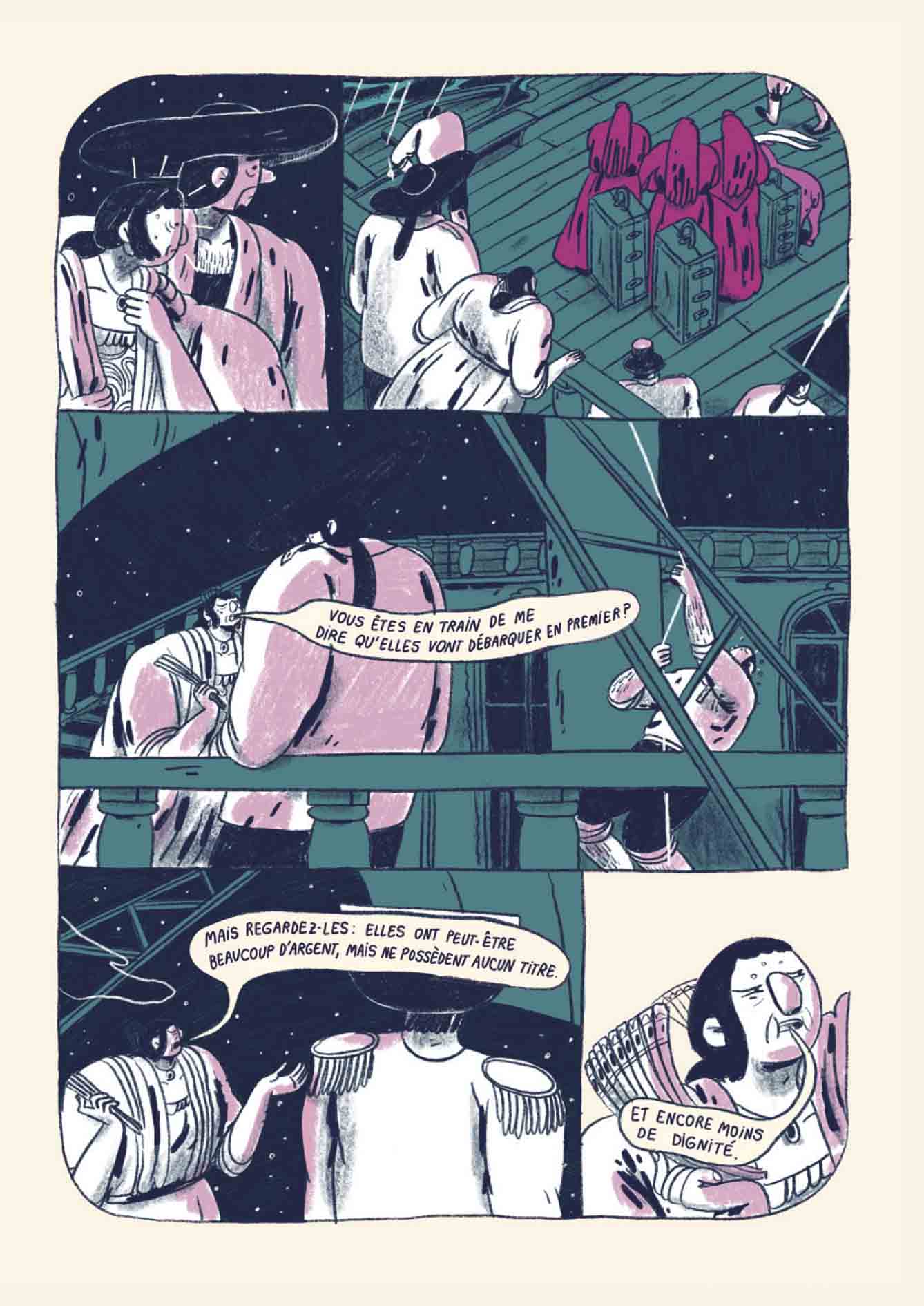 Alors c’est sûr, il y a bien une volonté de la part de Sole Otero de nous proposer quelque chose d’original et qui sort des sentiers battus, et c’est assurément le cas. Cela se vérifie également dans son approche graphique, le design des personnages à l’aspect volontairement disproportionné (de petites têtes sur des corps très vastes) ou la mise en page très libre et très morcelée. Le bémol serait plutôt lié à l’identification des visages, similaires dans leur rondeur et pas toujours expressifs, autre frein à la fluidité de la lecture.