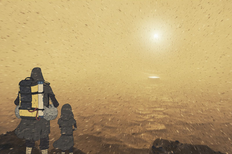 Le récit démarre quelques années après l’arrivée du vaisseau sur Geminae, loin d’apparaître comme la terre promise. Dans un enfer de poussière et de brume opaque, une fillette prénommée Nova marche aux côtés de son père Reiz (une scène qui évoque instantanément La Route), en quête de l’antidote permettant de retarder le processus de fossilisation de son corps. Alors que le reste de l’équipage semble avoir péri lors de l’atterrissage, Reiz, qui dispose d’une quantité limitée de doses, sait que le gros du stock doit se trouver dans un des modules du vaisseau, ceux-ci s’étant dispersés accidentellement avant leur descente dans l’atmosphère de Geminae. Pour ce faire, Reiz va devoir marcher longtemps, et affronter les violentes tempêtes qui balaient constamment la planète hostile, alors que son pas se fait plus lourd et que ses membres deviennent de plus en plus rigides… Nova quant à elle, première humaine née sur Geminae, cherche à connaître les circonstances de sa naissance, convaincue que son père ne lui dit pas la vérité…