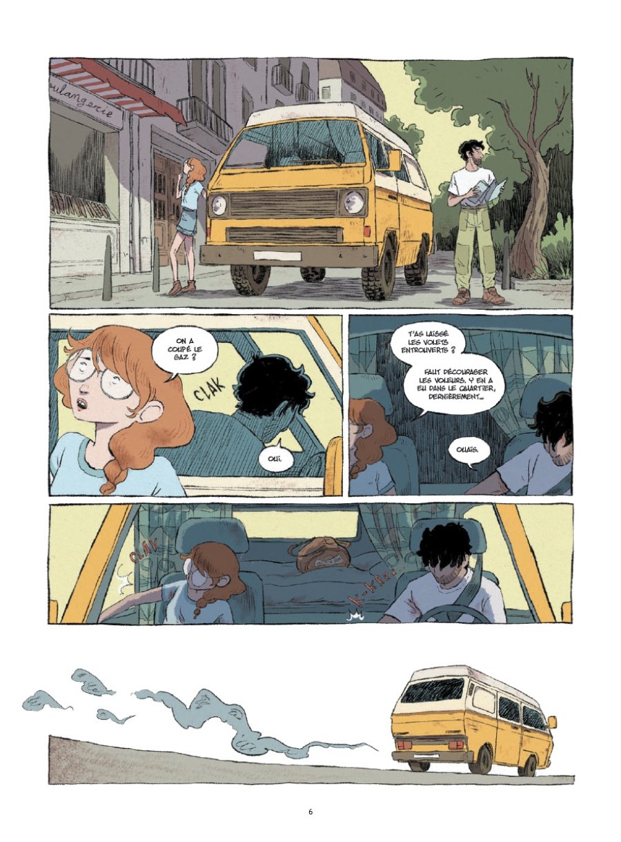 Couple en apparence modèle, Aimée et Ulysse sont-ils vraiment faits l’un pour l’autre ? Le jour où ils prennent la route pour le sud de l’Espagne dans leur van aménagé pour l’occasion, rien ne se passe comme prévu. Une panne, et c’est tout leur programme qui s’en trouve chamboulé. Il faut dire qu’Aimée redoute l’imprévu plus que tout au monde, contrairement à Ulysse qui mise plutôt sur l’aventure et la vie au grand air, après une thèse entre quatre murs qui l’a laissé exsangue. Cette histoire parle de la quête initiatique d’un couple qui s’aime mais aux aspirations éloignées.