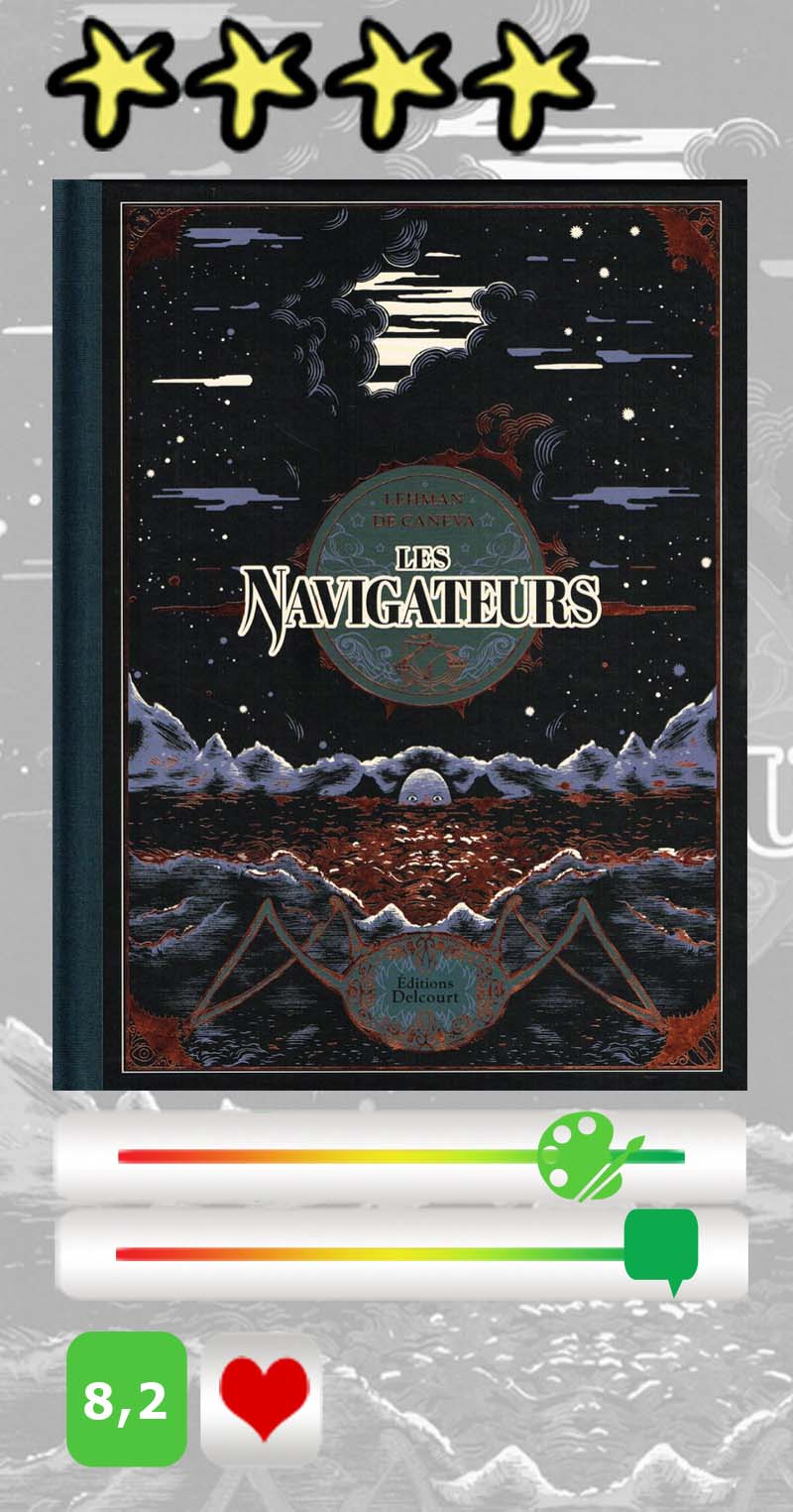 Véritable invitation au rêve, qui plus est bénéficiant d’une édition soignée pour mettre en valeur la très belle couverture, Les Navigateurs s’impose comme une des meilleures aventures fantastiques de l’année, avec en filigrane une quête initiatique plus psychologique sur la façon d’échapper à des traumatismes culpabilisants. Par une documentation poussée qui sert de socle à son imaginaire foisonnant, Serge Lehman parvient à réenchanter un pays qui en a bien besoin (le nôtre !), faisant que ses citoyens n’en finissent pas d’être désabusés par l’absence de perspectives politiques. Depuis le début, Lehman s’inscrit en passeur — moderniste et non nostalgique — d’une tradition littéraire fantastique délaissée en France et en Europe, souvent au profit des productions américaines ou japonaises. Et ça, c’est extrêmement précieux.