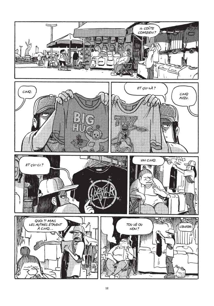 Et c’est un autre point fort de l’album, une galerie de personnages très bien campés, parfois hauts en couleur, dont les routes vont se croiser à la faveur des événements. En contrepoint de Tâm, il y a Alex, le garçonnet blondinet et solitaire qui a pour marotte de faire voler son drone au milieu des barres hlm de son quartier. Celui-ci se réfugie souvent chez sa vieille copine Hella, une ancienne actrice forte en gueule qui survit dans sa cabane de jardin à l’aide de sa maigre retraite. Et puis il y a aussi Dennis, le frère aîné de Tâm, amateur de black metal un rien anémique, et Marina, la plus badass des ados du quartier, qui, en bonne dominatrice, a jeté son dévolu sur Dennis, donnant lieu aux scènes les plus hilarantes du livre.