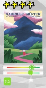 Par un découpage en cinq chapitres, représentant chacun une saison (2 hivers, un printemps, un été et un automne), Mayte Alvarado produit une biographie elliptique de la vie d’une artiste qui se confondait avec son œuvre, « une vie consacrée à la création », car en effet, il ne se passait pas un jour sans que cette dernière n’empoigne son pinceau. Hormis sa majeure partie qui se déroule dans la Bavière dont elle était tombée amoureuse, le récit raconte son séjour dans le Paris de l’entre-deux-guerres, mais aussi ses relations compliquées avec Kandinsky, et plus grave encore, l’arrivée au pouvoir des Nazis qui n’avaient guère d’appétence pour son art, qualifié de dégénéré. Elle réussit à préserver ses œuvres de leur folie destructrice en les cachant dans sa cave. La dernière scène hivernale est très belle, où l’on voit une Gabriele au crépuscule de sa vie gravissant une montagne enneigée pour y faire un croquis (le dernier ?) du paysage alpin, comme une sorte de clin d’œil au Voyageur contemplant une mer de nuages de Caspar David Friedrich.