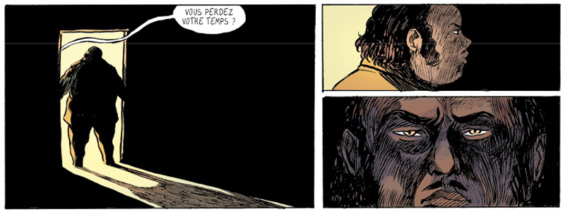 Thomas Gilbert a su leur donner un visage en phase avec leur personnalité, d’une expressivité éloquente. Son trait semi-réaliste et maîtrisé s’accorde bien avec la mise en page dynamique et un cadrage bien étudié. Les couleurs oscillent entre une certaine sombreur et une clarté désaturée pour les scènes extérieures, imprimant une ambiance un peu inquiétante et en phase avec le propos doux-amer de ce polar sociologique. Du beau travail !