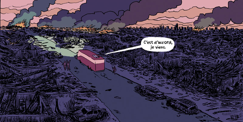 Quant au scénario, s’il reste cohérent, il aurait peut-être mérité d’être élagué. Certaines digressions et dialogues n’apportent pas grand-chose à l’histoire, à moins d’accepter l’adjonction d’une dose de psychologie (cf. les rapports tendus entre Agafia et sa mère Paloma) dans ce récit d’aventure sur fond de catastrophe écologique. Malgré tout, Grégory Jarry et Robin Cousin ont su insuffler suffisamment de tension dans la narration pour nous donner envie de découvrir le dernier volet, prévue l’an prochain, ce qui permettra de se faire une idée définitive.