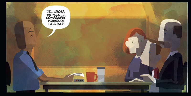 On n’est pas vraiment sûr de ce que l’on doit retenir de cette bande dessinée, mais sans dévoiler l’intrigue, on peut dire qu’il est question du deuil, avec cette impossibilité à accepter la mort d’un être aimé. Aucune violence ici, ce récit est comme un va-et-vient entre le réel et l’imaginaire, le passé et le présent, une invitation à passer de l’autre côté du miroir, vers une dimension parallèle… Certes, l’atmosphère reste vaguement inquiétante mais globalement paisible.