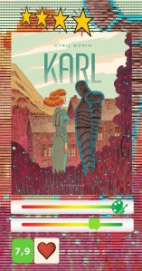 Bien sûr, la thématique n’est pas nouvelle, elle a déjà été exploitée maintes et maintes fois dans la pop culture, l’une des œuvres fondatrices étant sans doute le Frankenstein de Mary Shelley, ainsi que, plus tardivement, le Cycle des robots d’Isaac Asimov. Au cinéma, nous avons eu Metropolis de Fritz Lang, et plus récemment 2001, l’Odyssée de l’espace, de Stanley Kubrick, une adaptation du livre d’Arthur C. Clarke. D’ailleurs, Karl, n’évoque-t-il pas, ne serait-ce que par son nom, « Hal », l’IA contrôlant le vaisseau spatial de 2001 ?