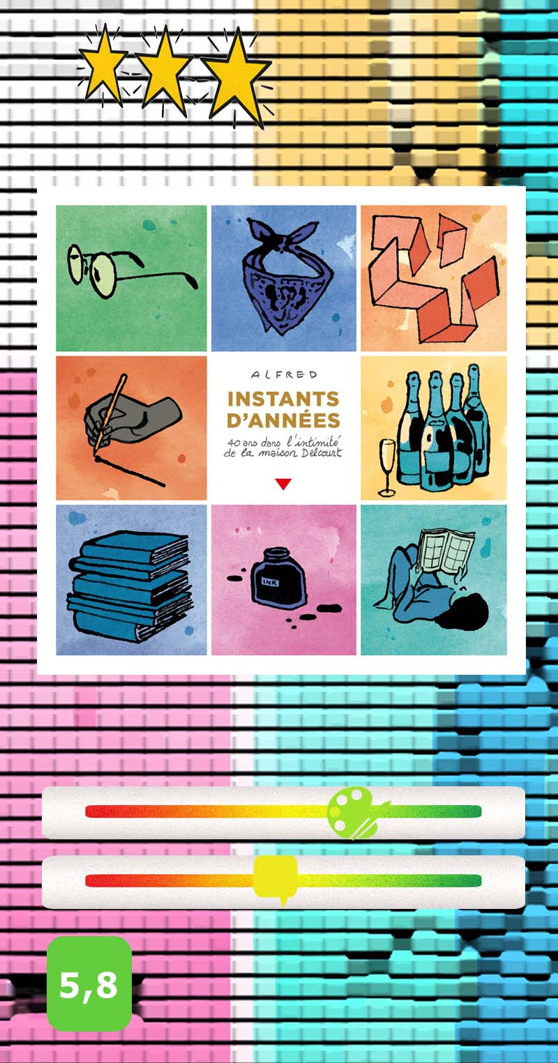 Instants d’années est l’ouvrage qui accompagne l’exposition « L’Aventure éditoriale – Delcourt, 40 ans au rythme du 9e art », qui a lieu du 29 janvier au 15 novembre à la Cité internationale de la bande dessinée et de l’image d’Angoulême. Celle-ci devait inaugurer le FIBD, qui par les malheureuses circonstances que l’on connaît, a été annulé cette année.