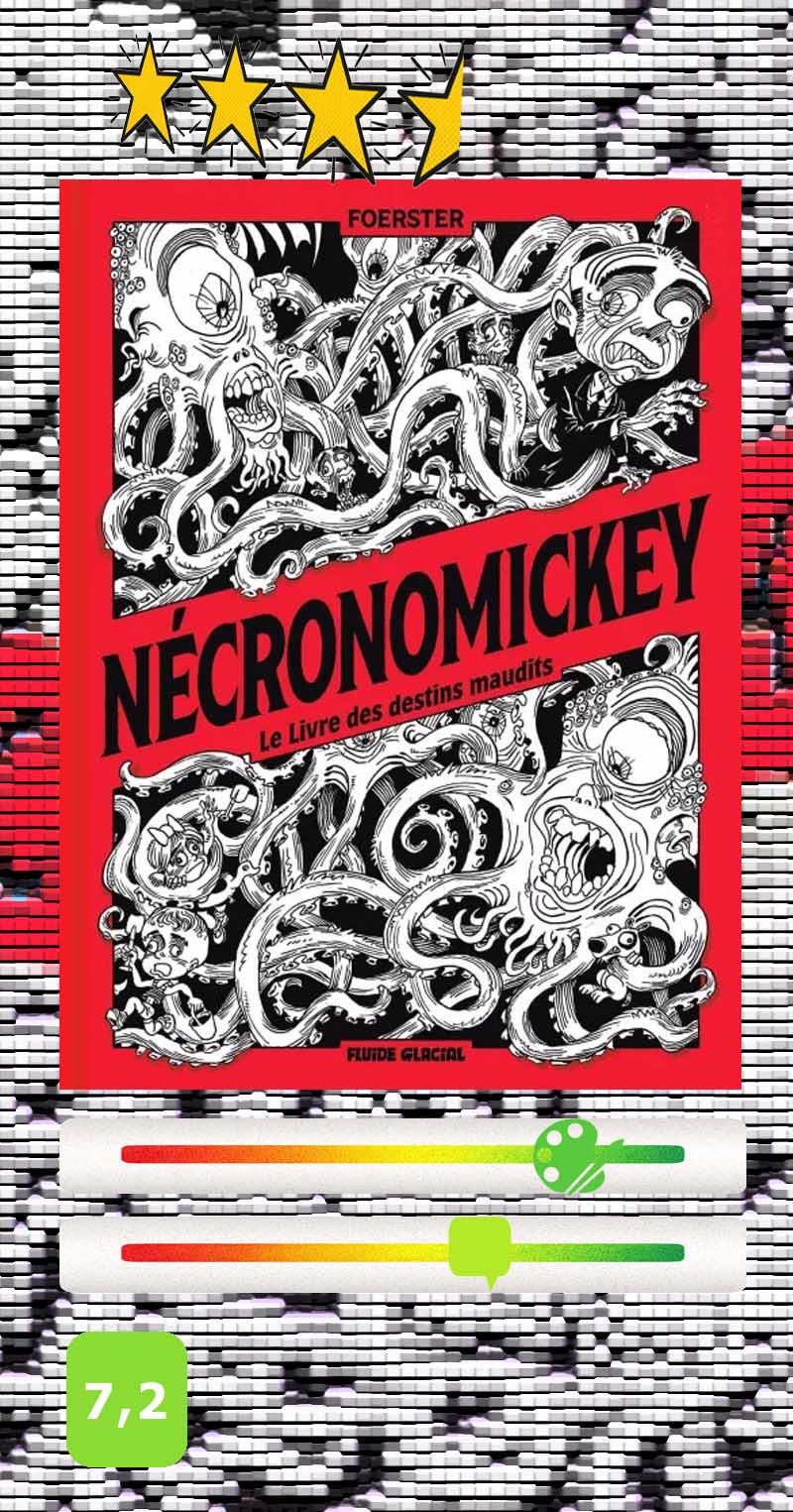 Sortirez-vous indemne de cette lecture ? Si les poulpes gluants ou les cadavres dévorés par les vers ne vous font pas tourner de l’œil, vous devriez pouvoir vous plonger sans risque dans ce Nécronomickey, et au diable les superstitions ! N’oublions pas que la réalité est souvent bien plus terrifiante…