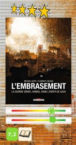 L’Embrasement est un ouvrage essentiel pour tenter d’avoir une vue raisonnée de la situation dans cette partie du monde plus que jamais en proie au désordre. Pour éviter d’exacerber un sujet hautement radioactif, les auteurs se sont cantonnés à énumérer les faits de la façon la plus objective possible, démarche très appréciable s’il en est. Ils évitent même d’employer le terme de « génocide », alors même qu’une enquête de l’ONU a qualifié ainsi la guerre d’Israël sur Gaza. La neutralité recherchée du livre permettra à chacun de se faire son idée, car quand l’émotion prend le pas sur la raison, seuls les faits parlent… Quoi que l’on en pense, Florent Calvez confesse en postface avoir pris des libertés par rapport au livre original, mais insiste sur cette dimension de neutralité, tout en se disant bouleversé par certains témoignages et certaines images. A défaut d’être irréprochable, il dit avoir « taché d’être honnête », « ayant toujours considéré toutes les victimes dans leur statut particulier, quelles qu’elles soient, d’où qu’elles soient. ». Et on le remercie pour ça. Et pour ce travail salutaire.