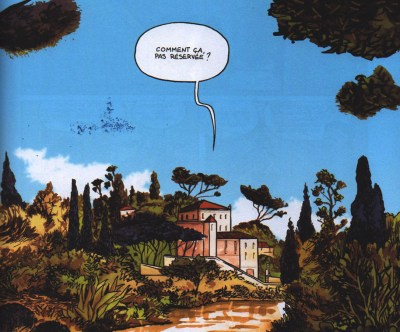Alfred — L’Italie, j’y suis très attaché simplement parce que je suis par mes origines à moitié Italien — de par mon père. C’est déjà une culture dans laquelle j’ai baigné enfant, j’ai fait beaucoup d’aller et retour entre la France et l’Italie. Adulte, j’ai vécu en Italie, ma fille a grandi en Italie. C’est une culture qui est très présente chez moi depuis toujours. Et naturellement quand je conçois mes albums seuls, que ce soit Come Prima ou ici Senso, je pioche souvent mes points de départ dans mes souvenirs, dans des choses très personnelles. En l’occurrence, il s’avère que les souvenirs qui concernaient ces deux livres-là étaient essentiellement des choses liées à l’Italie, et très naturellement pour moi c’était ce décor et ce paysage qui allaient prendre place. La raison, elle est à la fois personnelle et puis simplement liée au fait que c’était des décors que j’avais envie de raconter en dessin, et que j’ai encore envie de dessiner aujourd’hui d’ailleurs.